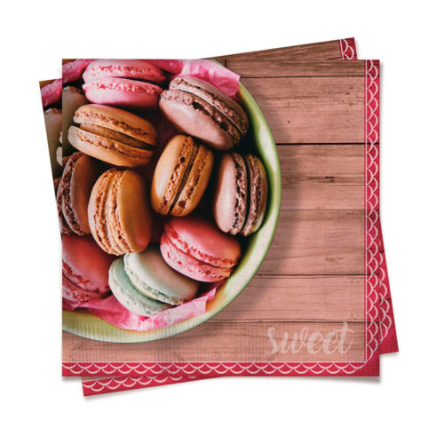 Contém na embalagem 20 guardanapos 33X33CM tema Macarons.