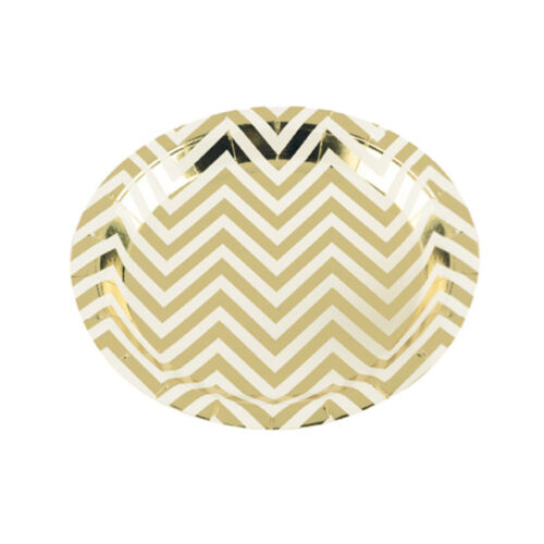 Contém na embalagem 10 unidades de prato papel 18CM Missoni Dourado.