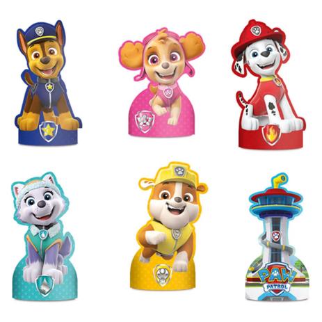 Contém na embalagem 6 unidades de silhuetas para decoração de mesa do tema PATRULHA CANINA.