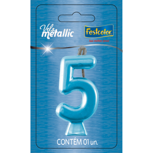 Contém 1 vela metallic Nº5 na cor AZUL.