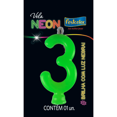 Contém 1 vela NEON Nº3 na cor VERDE.